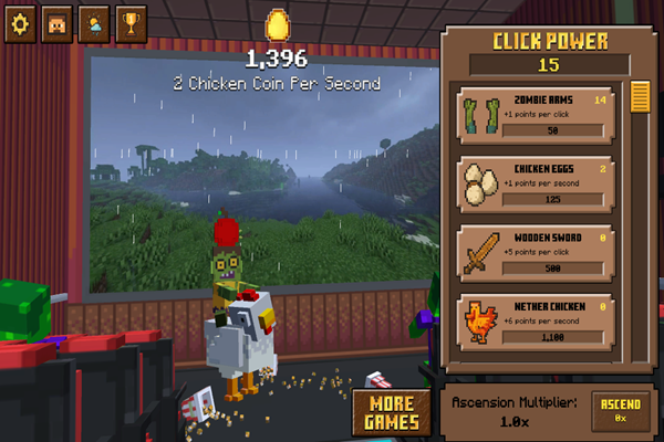 At the heart of Chicken Jockey Clicker lies one simple goal: tap the Chicken Jockey. Every click earns you points, and if you click fast enough, your frenzy is rewarded with double points per tap! This turbo-click mechanic makes the early game a rapid race to your first milestone.